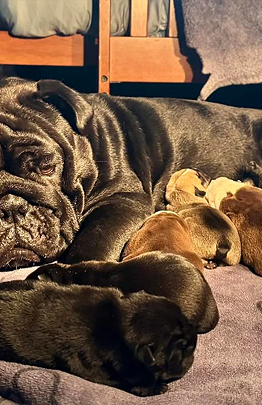 Her dedication to the puppies was evident, especially in her efforts with potty training, which made the transition to our home smooth and effortless. We had the chance to meet her early on and introduce her to our current Bulldog.