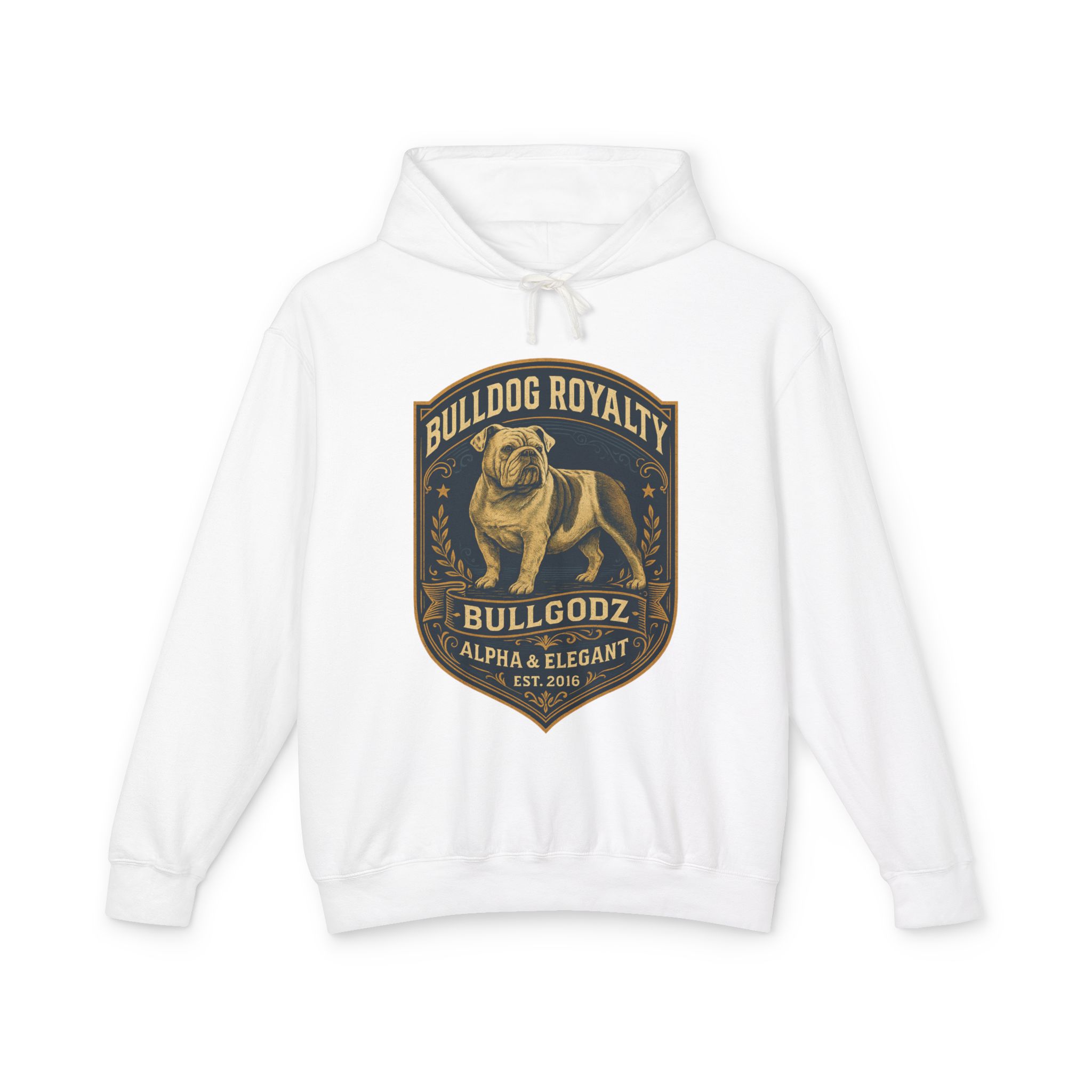 An English Bulldog hoodie should communicate confidence without explanation. This English Bulldog hoodie from the Bullgodz HQ Legend Collection was designed to do exactly that. Featuring the Bulldog Royalty crest and the words Alpha & Elegant, this piece represents authority, self-assurance, and a quiet kind of power that doesn’t need permission.