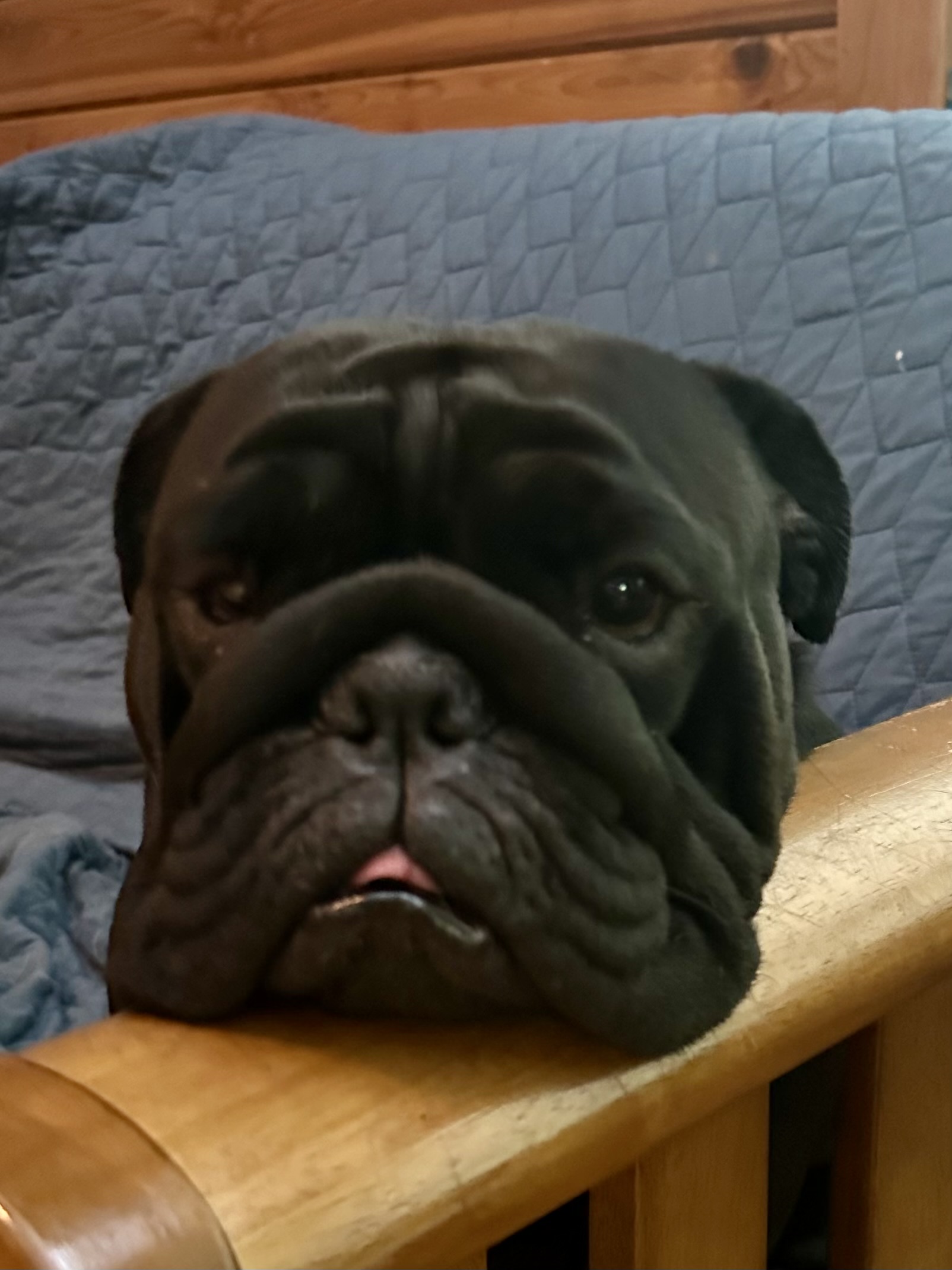 This design was inspired by our girl Nyx, a Bulldog known in our home as the queen of grumpy expressions and diva-level energy. Nyx has a legendary face—one of those Bulldogs who can be perfectly happy, totally content, and full of love, yet somehow looks like she’s judging every decision you’ve ever made. It’s iconic. It’s dramatic. It’s Bulldog perfection.