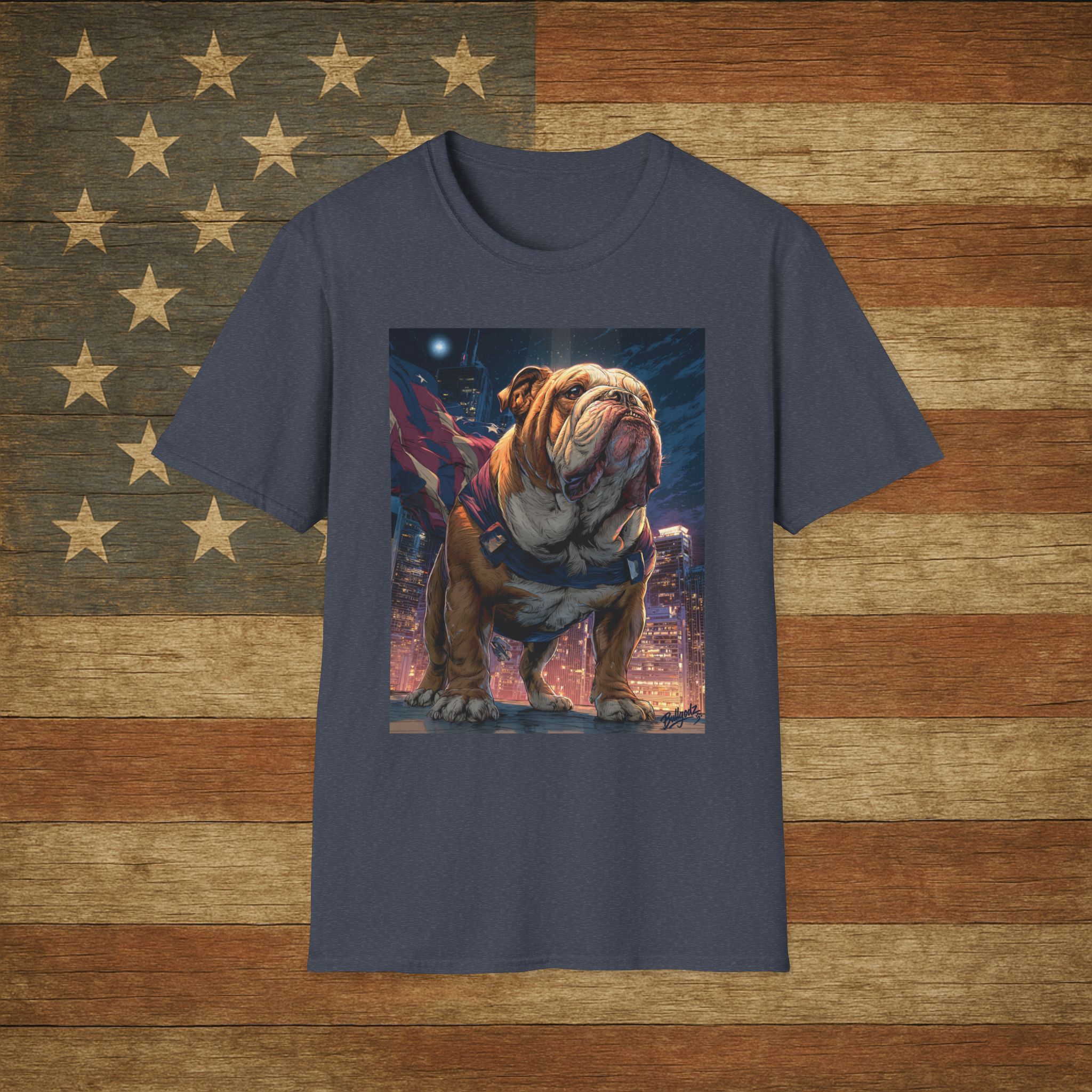A bulldog built for hero status. Bold, patriotic, and ready for action — this ultra-soft unisex tee delivers comfort and style for everyone.