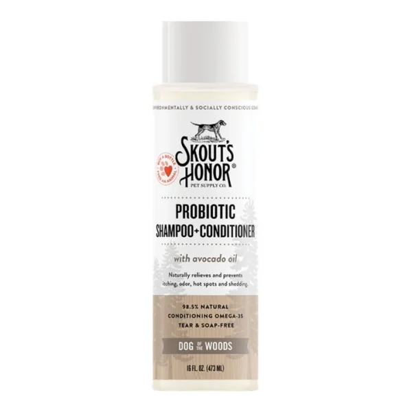 Your furry friend has no time for itching in his daily schedule, so help stop the scratch with Skouts Honor Probiotic Dog Shampoo & Conditioner. This formula gently cleans and moisturizes your canine companions coat to relieve dry, irritated skin that is known to ruin your pals fun! Live colony-forming probiotics help support healthy skin and a naturally beautiful coat while defending against inflammation, hotspots and odors. The shampoo and conditioner combination is paw-fect for all skin types and conditions and can even target excessive shedding! Your pets fur is left silky and smooth from this cruelty-free remedy that contains no sulfates, parabens, GMOs, colors or dyes..