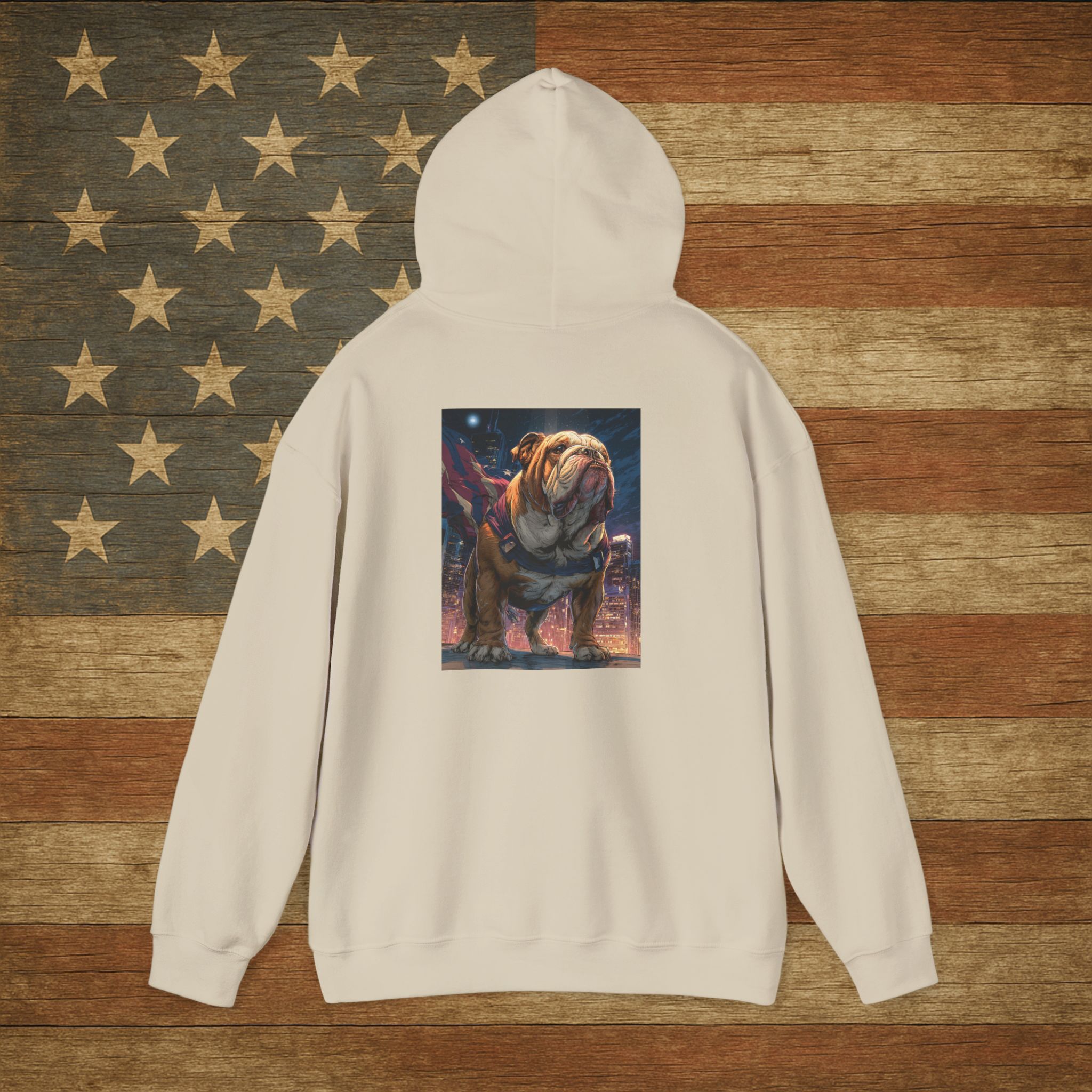 Crafted from a premium heavyweight cotton blend, it’s built for durability, warmth, and all-day comfort. Whether you’re at a patriotic event, hanging at the dog park, or just lounging, this hoodie makes sure your bulldog pride is on full display.